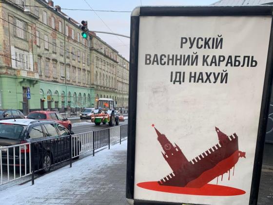 Фраза была впервые придумана украинским солдатом в ответ на требование российского флота сдаться, когда он готовился атаковать остров Змеиный в Черном море в первые часы полномасштабного вторжения России в 2022 году.